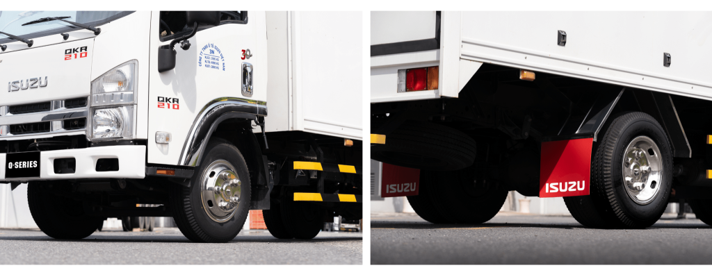 • Vè chắn bùn sau màu đỏ in logo ISUZU không chỉ nổi bật về mặt thị giác mà còn gợi dấu ấn kỷ niệm đặc biệt của dòng xe.